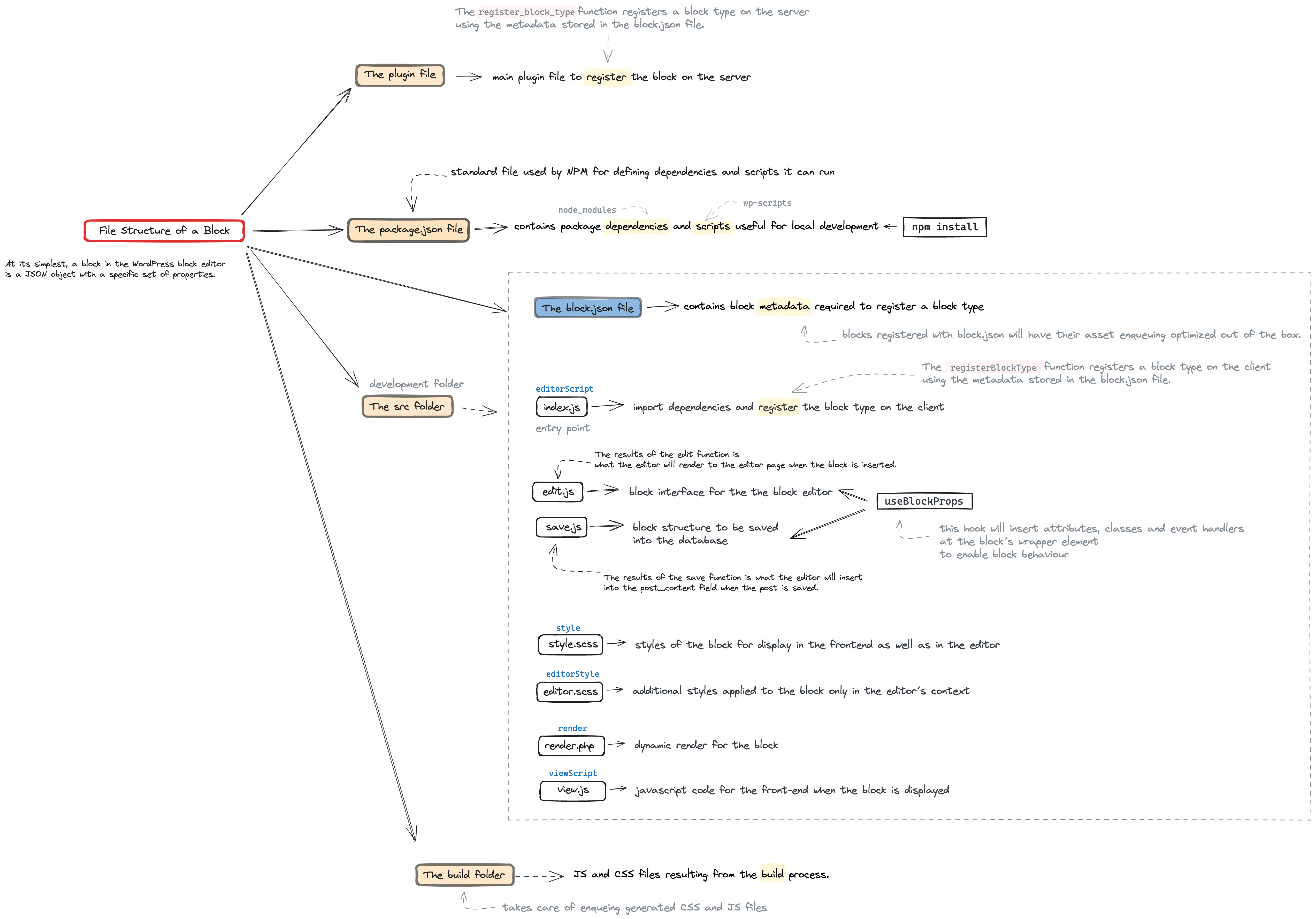 build/When developing custom blocks for WordPress, it’s best practice to register them within plugins rather than themes. This strategy guarantees that your blocks stay accessible, even when users switch themes. While there might be situations where embedding blocks directly into a theme could be appropriate, this guide focuses on blocks housed within a plugin. Specifically, it details the file structure as produced by the create-block tool.